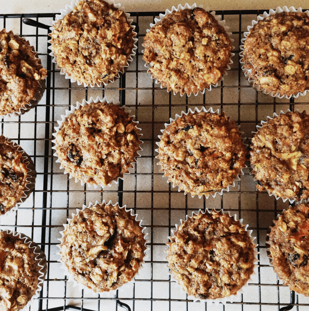 - In a large bowl, combine the almond meal, oats, walnuts, currants or raisins, if using, cinnamon, nutmeg, baking soda, and salt.